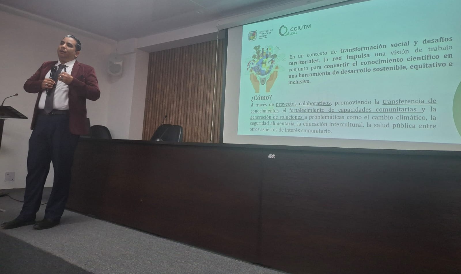 📌 En el IV Taller Internacional de Vinculación organizado en el marco de la IX Convención Científica Internacional de la Universidad Técnica de Manabí UTM 2025, el Lcdo. Fabián Vera Anzules, Mge disertó la ponencia titulada «Red de conocimiento y acción: Conectando ciencia y comunidad desde la REUVIC Z4, intervención realizada en calidad de Coordinador de la Red Ecuatoriana de Vinculación con la Sociedad zonal 4 Manabí – Santo Domingo de los TSa’chilas. 📊📚📈