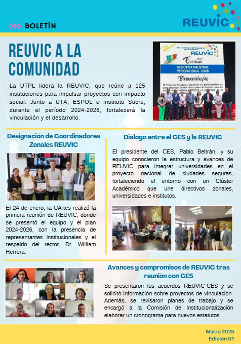 Bajo el liderazgo de la UTPL, junto a la UTA, ESPOL y Instituto Sucre, la REUVIC avanza con una planificación 2024–2026 que impulsa proyectos con impacto real en las comunidades.