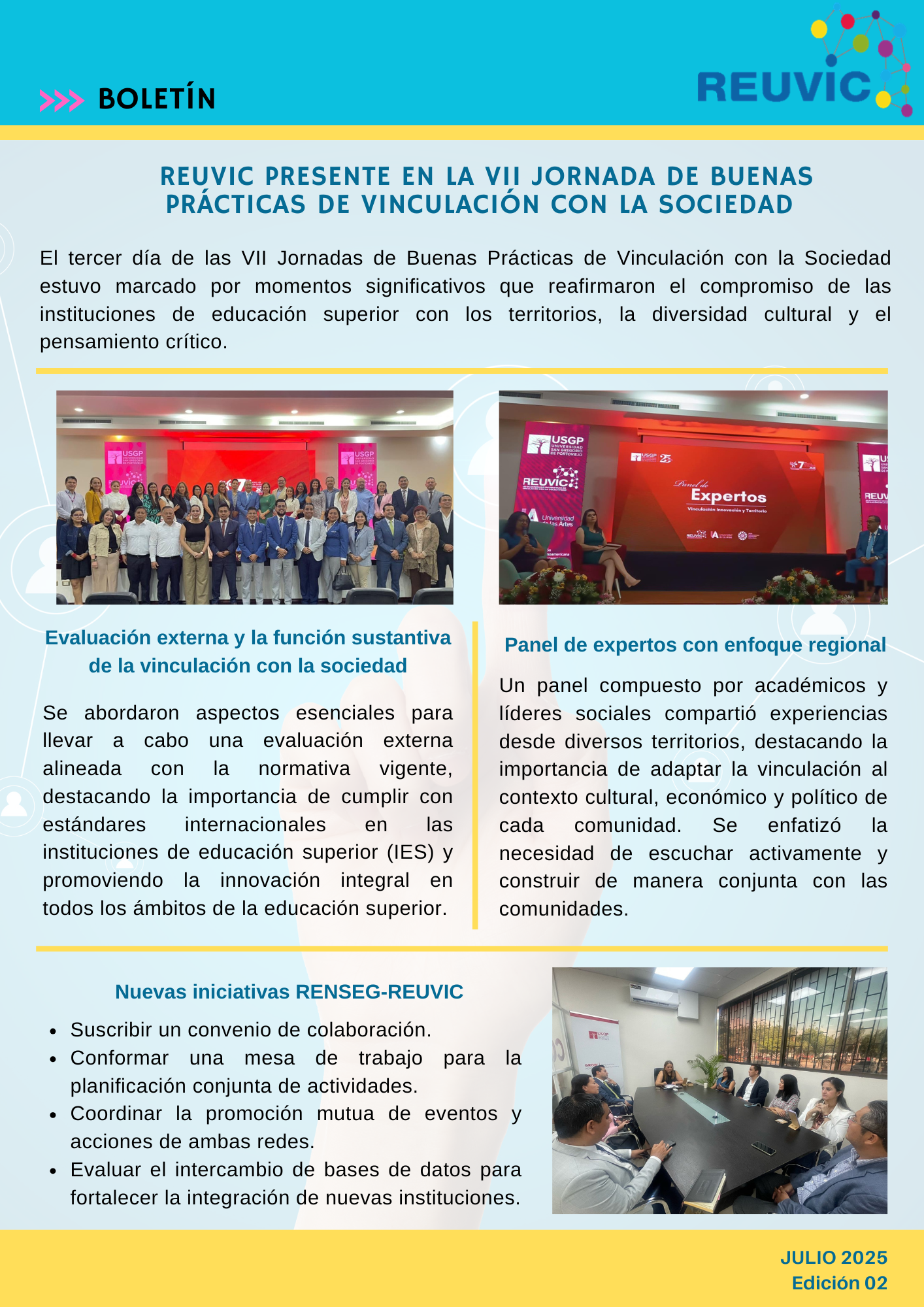 Durante la VII Jornada de Buenas Prácticas de Vinculación, la REUVIC reafirmó su liderazgo al compartir experiencias que integran la docencia, la investigación y la acción social con los territorios y comunidades.